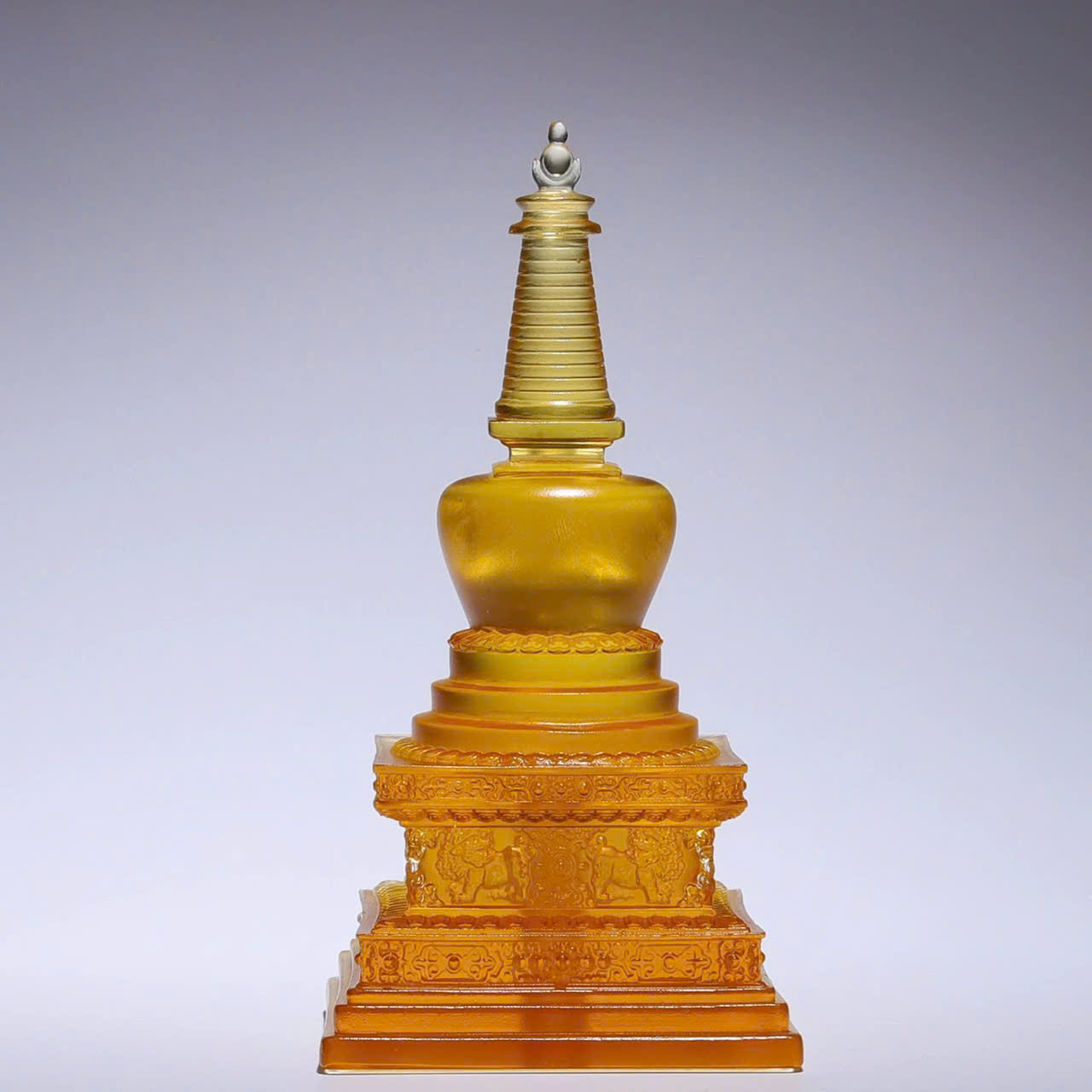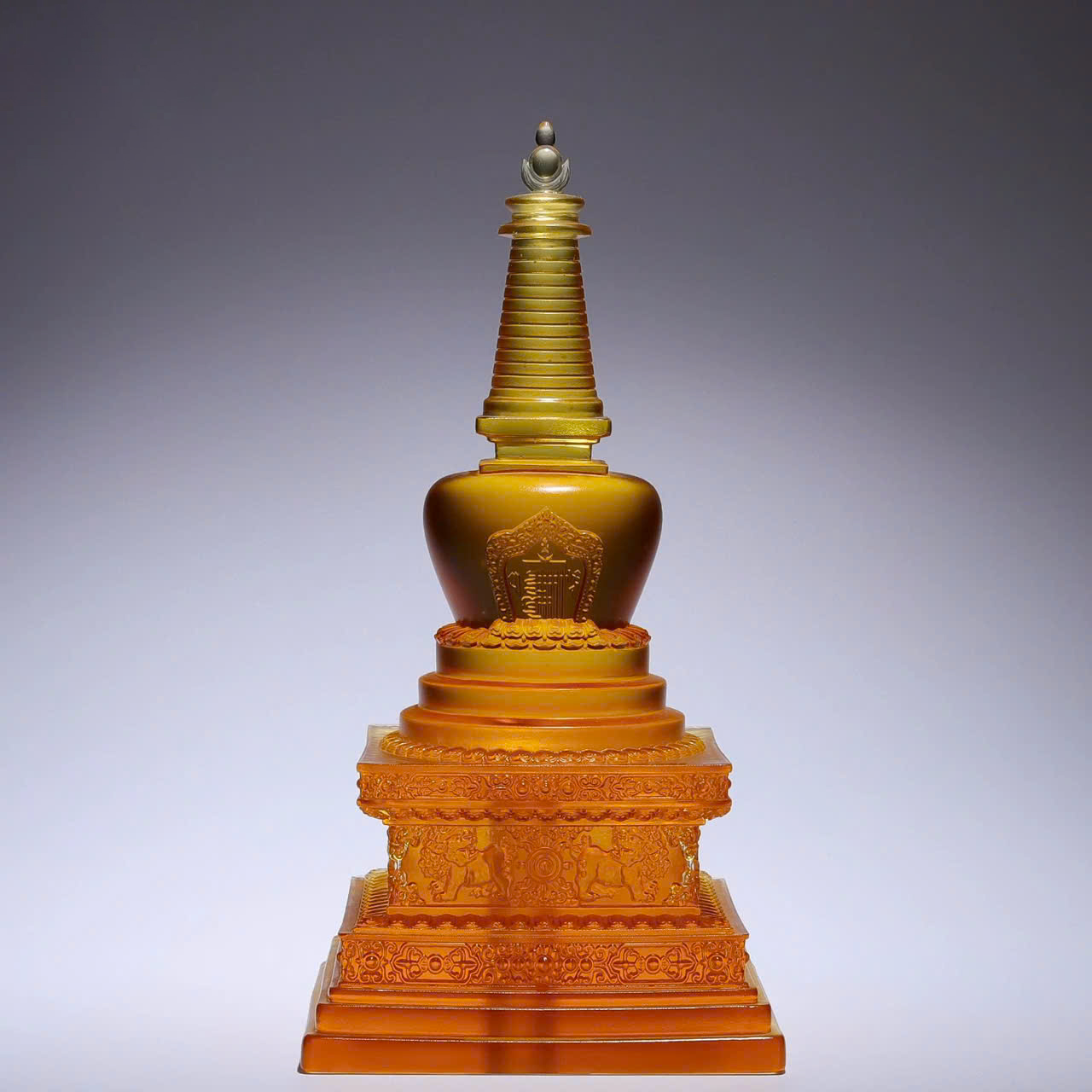 Trong các loại chất liệu chế tác pháp khí, Lưu Ly luôn giữ một vị trí đặc biệt nhờ vẻ đẹp huyền ảo và những tầng ý nghĩa tâm linh sâu sắc. Tháp Xá Lợi bằng Lưu Ly với kích thước 30 x 15.5 cm không chỉ là nơi lưu giữ báu vật thiêng liêng của bậc giác ngộ mà còn là vật phẩm phong thủy mang lại năng lượng chữa lành, bình an và sự thịnh vượng cho gia đạo.